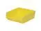 Crafted from durable plastic material, the yellow-colored AKRO-MILS - 30170YELLO Shelf Storage Bin ensures longevity. It features a molded-in label area along with a label holder for efficient organization and easy identification of stored goods. Despite its sturdy build, this item has been built to be nestable when not in use or during transport.
