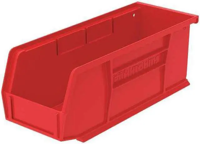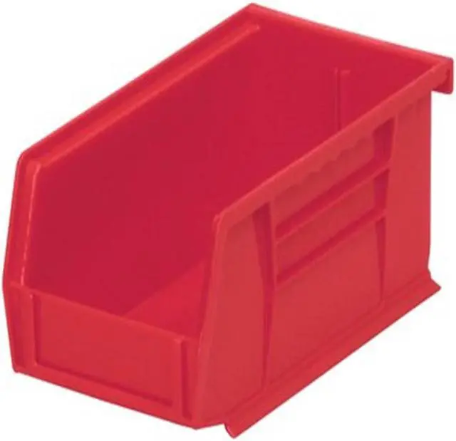 The AKRO-MILS - 30220RED Hang & Stack Storage Bin is a stationary storage solution designed to meet the needs of small businesses requiring efficient and organized storage. With an inside length of 6 3/4 in, a width of 3 7/16 in, and a height of 2 13/16 in, this bin provides ample space for various items while maintaining compactness for optimal use of available space. The overall dimensions are measured at 7 3/8 in L x 4-1/8 in W x 3 in H, offering balanced proportions that can accommodate up to a load capacity of ten pounds.