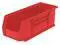 Crafted from durable plastic material, this red hangable storage bin delivers long-lasting performance. It features molded slots for ID labels and includes a label holder which can be beneficial when organizing items efficiently. Despite its stationary nature, the bin's hanging capability allows flexibility on where it can be placed or stored.
