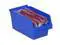 This blue-colored shelf storage bin includes additional user-friendly features such as a molded-in label area along with a label holder which aids in organization by allowing easy identification of contents stored within the bin. Despite its robustness, it maintains mobility through its hangable feature which allows users flexibility in terms of placement options. Additionally, it's nestable attribute promotes ease during storage when not in use.