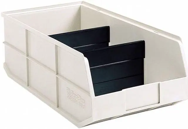 Divider, Used With Bin or Container Style Shelf Bin, Overall Height 7 in, Overall Length 20 in, Black, Industrial Grade Polymer, Divider Direction Front to Back, ESD Conductive No, Package Quantity 6. This item has been restricted from sale in the following state (s): []