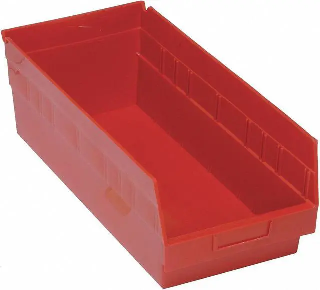 This red-colored shelf storage bin includes a label holder for efficient organization and easy identification of contents stored within. It's compatible with Mfr. No DSB807/808/814 models which further expands its usability options across different settings or requirements. Please note that while this item has a stacking capacity of sixty pounds (60 lb), it is not stackable itself due to design constraints.. This item has been restricted from sale in the following state(s): []