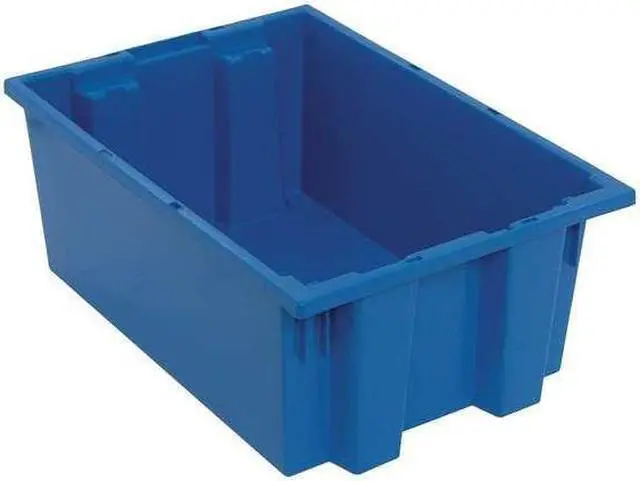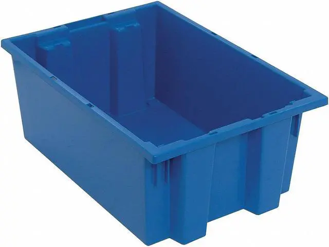 Stacking and Nesting Tote, Container Wall Type Solid, Fork Pockets Fork Pockets Not Included, Includes Lid Lid Not Included, Material Plastic, Maximum Operating Temperature 135 Degrees F, Minimum Operating Temperature -20 Degrees F, Body Color Blue, Nestable Nesting Capable, Overall Height 8 in, Overall Length 19 1/2 in, Overall Width 13 1/2 in, Resistant To Chemical, Corrosion, Water, Stackable Stacking Capable, Stacking Capacity 100 lb, Volume Capacity 6 gal, Weight Capacity 65 lb. This item has been restricted from sale in the following state (s): []