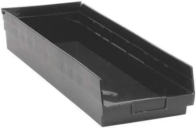 Shelf Bin, Color Black, Includes Dividers Dividers Not Included, Includes Label Holder Label Holder Included, Material Plastic, Maximum Operating Temperature 250 Degrees F, Overall Height 4 in, Overall Length 23 5/8 in, Overall Width 8 3/8 in, Stackable Not Stacking Capable, Weight Capacity 50 lb, Mobility Stationary, Nestable Nesting Capable, Number of Divider Slots 7, Number of Long Divider Slots 0, Number of Short Divider Slots 7, Number of Dividers Not Applicable. This item has been restricted from sale in the following state (s): []