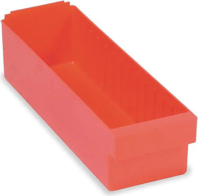 Drawer Bin, Outside Length 17 5/8 in, Outside Width 5 9/16 in, Outside Height 4 5/8 in, Volume Capacity 0.26 cu ft, Load Capacity 25 lb, Material High Impact Polystyrene, Color Red, Use Divider No. Mfr. No. DIV6123, ESD Conductive No, Inside Height 4 3/8 in, Inside Length 16 1/2 in, Inside Width 5 1/8 in