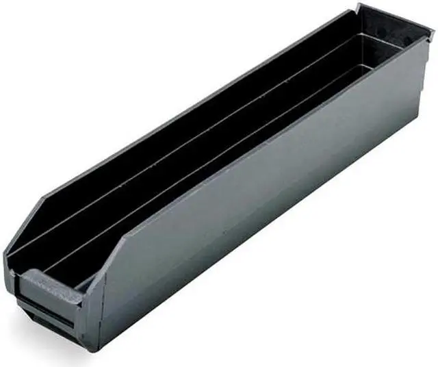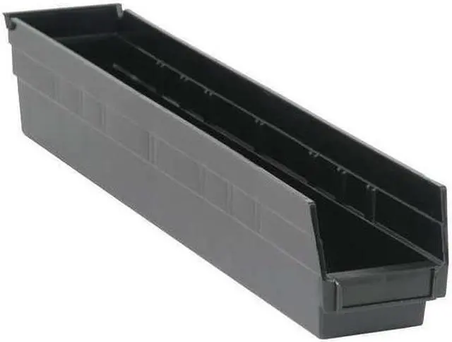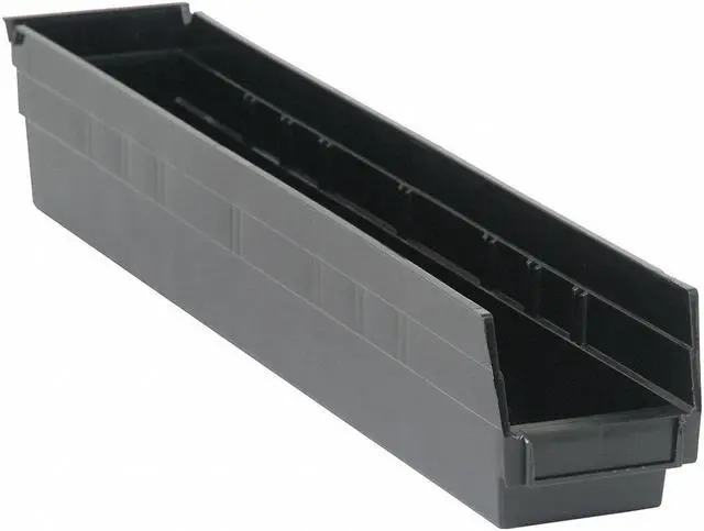 Crafted from durable polypropylene material in a sleek black color, the QSB105CO bin offers robustness and style in one package. This shelf storage bin has an impressive load capacity of up to fifty pounds making it suitable for storing various items without compromising on its structural integrity. It also features ESD conductive properties which can be beneficial in certain situations where static electricity could pose a problem.