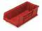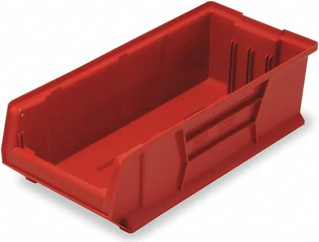 Constructed from high-quality polypropylene/polyethylene material, this red-colored storage bin is built to withstand substantial weight loads. It has a load capacity of up to100 lbs and can stack with other bins supporting up to150 lbs without compromising stability or integrity. This durable construction makes it suitable for heavy-duty use.