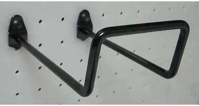 Double Closed Pegboard Hook, Overall Length 5 1/2 in, Overall Width 3 3/4 in, 1 in For Pegboard Hole Spacing, For Pegboard Hole Size 1/4 in, Surface, Screw-In Locking System, Circle For Pegboard Hole Shape, Steel, Black, Double Closed Hook Accessory Type, Package Quantity 5. This item has been restricted from sale in the following state (s): []