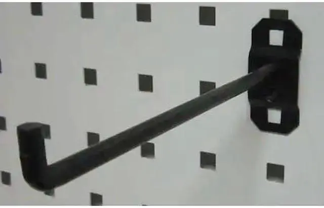 Single Rod Pegboard Hook, Overall Length 6 1/2 in, Overall Width 1 in, 1 1/2 in For Pegboard Hole Spacing, For Pegboard Hole Size 3/8 in, Surface, Screw-In Locking System, Square For Pegboard Hole Shape, Steel, Black, 90-Degree Single Hook Accessory Type, Package Quantity 5. This item has been restricted from sale in the following state (s): []