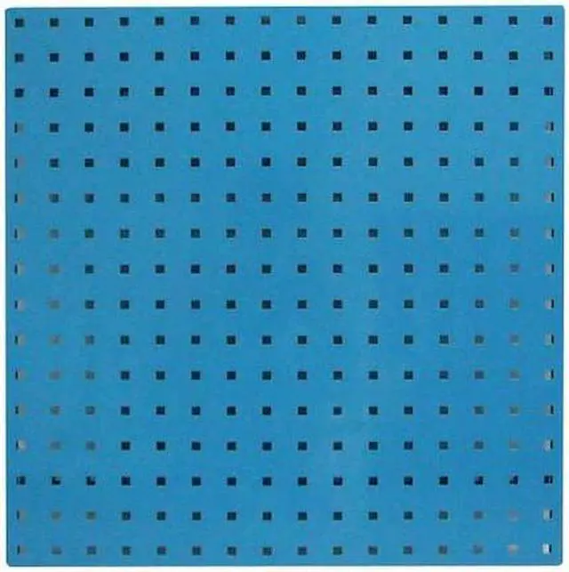 Pegboard Panel, Peg Hole Shape Square, Peg Hole Size 3/8 in, Peg Hole Spacing 1 1/2 in, Panel Pegboard Type, 300 lb Panel Load Capacity, Overall Depth 1/2 in, Overall Height 24 in, Overall Width 24 in, Storage Area 4 sq ft, Number of Usable Sides 1, Number of Hooks 0, Number of Panels 2, 600 lb Whole Unit Load Capacity, Blue, Powder Coated, Steel, Assembled No, Package Quantity 2. This item has been restricted from sale in the following state (s): []