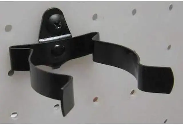 Spray Can Holder, Overall Length 2 7/8 in, Overall Width 2 in, 1 in For Pegboard Hole Spacing, For Pegboard Hole Size 1/4 in, Surface, Screw-In Locking System, Circle For Pegboard Hole Shape, Steel, Black, Spray Can Holder Accessory Type, Package Quantity 5. This item has been restricted from sale in the following state (s): []