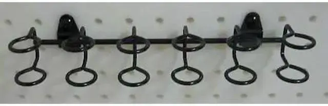 Multi-Ring Tool Holder, Number of Rings 2, Overall Length 2 in, Overall Width 9 in, 1 in For Pegboard Hole Spacing, For Pegboard Hole Size 1/4 in, Surface, Screw-In Locking System, Circle For Pegboard Hole Shape, Steel, Black, Multi-Ring Toolholder Accessory Type, Package Quantity 2. This item has been restricted from sale in the following state (s): []