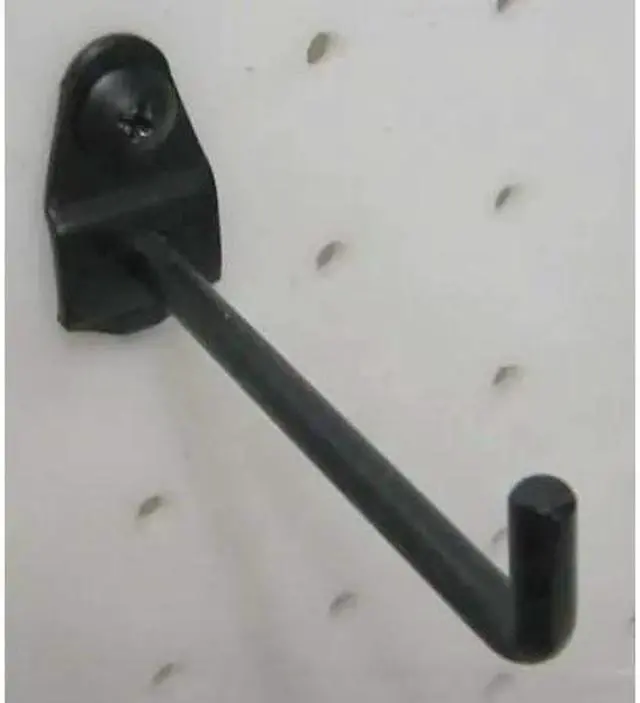 Single Rod Pegboard Hook, Overall Length 3 in, Overall Width 3/4 in, 1 in For Pegboard Hole Spacing, For Pegboard Hole Size 1/4 in, Surface, Screw-In Locking System, Circle For Pegboard Hole Shape, Steel, Black, 90-Degree Single Hook Accessory Type, Package Quantity 10. This item has been restricted from sale in the following state (s): []