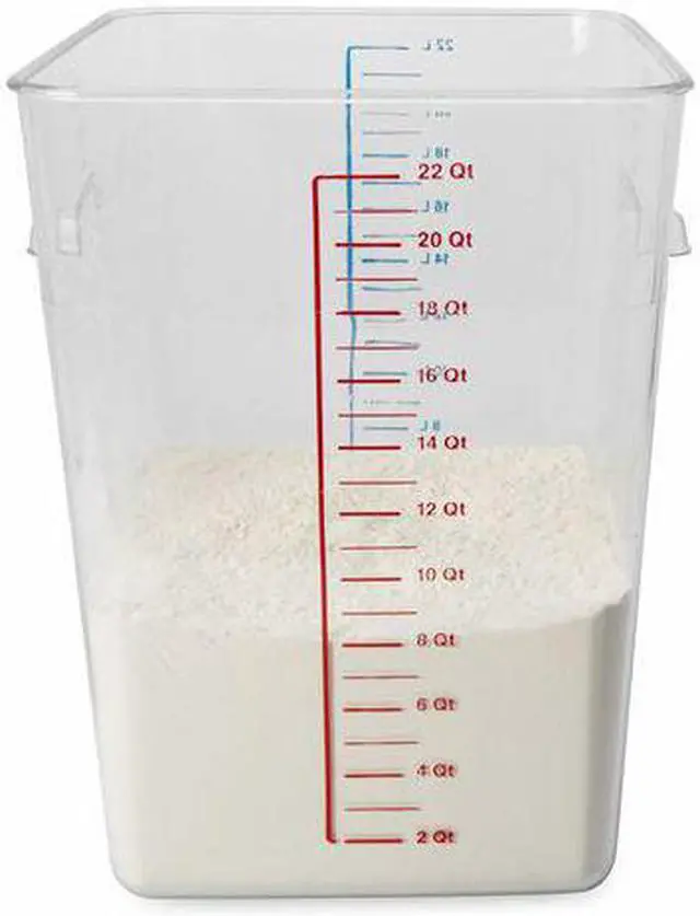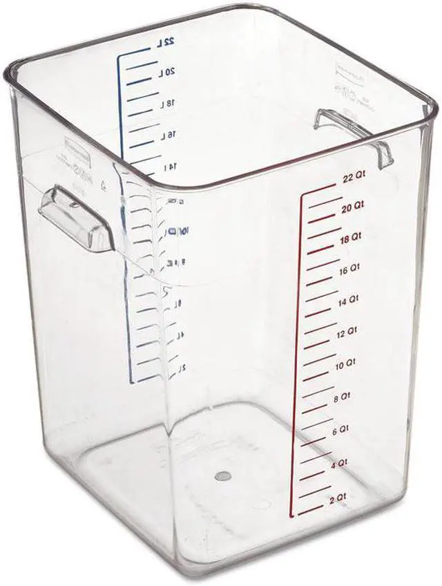 Food Storage Container, Capacity 22 qt, Color Clear, Material Polycarbonate, Overall Height 14 1/2 in, Overall Length 11 1/4 in, Overall Width 10 1/2 in, NSF Certified Yes, Dishwasher Safe Yes, Graduation Unit of Measure Liters, Quarts, Maximum Temperature 212 Degrees F, Microwaveable No, Minimum Temperature -40 Degrees F, Overall Diameter 10 1/2 in, Freezer Safe Yes, Product Type Food Storage Container, Graduated Yes, Includes Handle Yes, Inside Diameter Not Applicable. This item has been restricted from sale in the following state(s): []