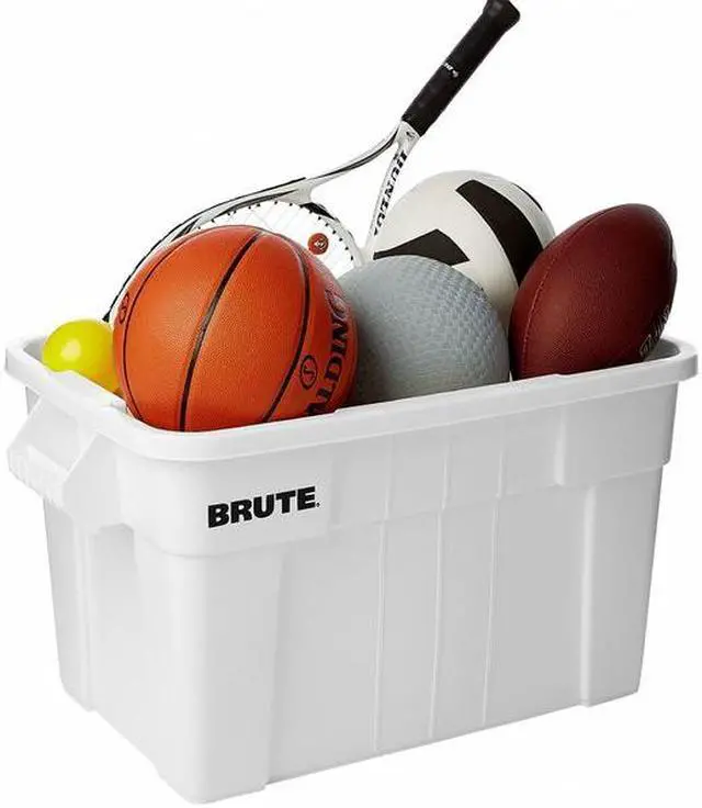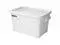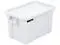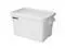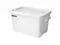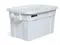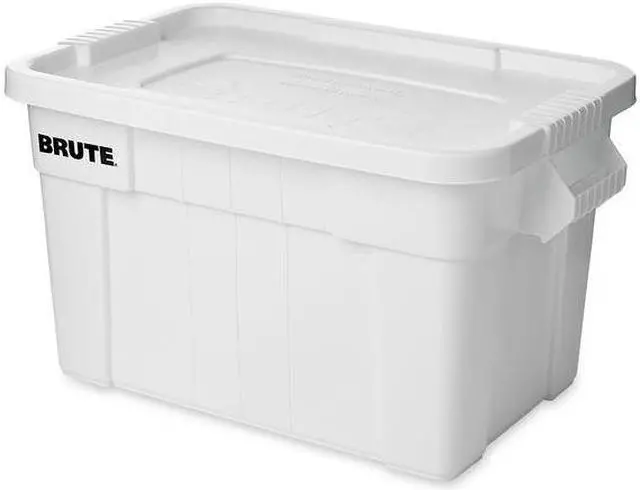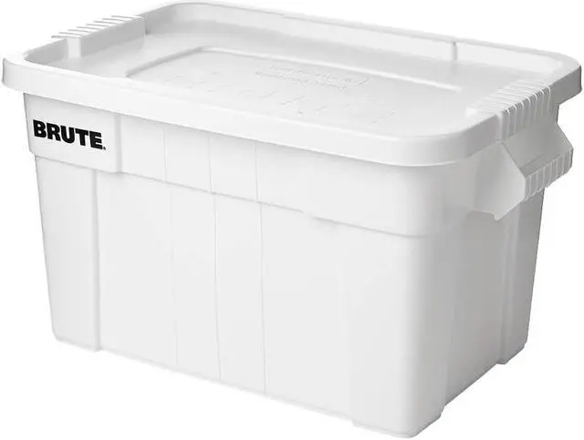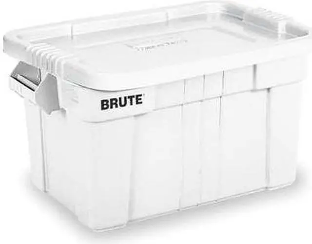 Item Storage Tote, Outside Length 27 7/8 in, Outside Width 17 4/5 in, Outside Height 15 1/8 in, Volume Capacity 20.0 gal, Material Polypropylene, Color White, Includes Handle and Snap on Lid. This item has been restricted from sale in the following state (s): []