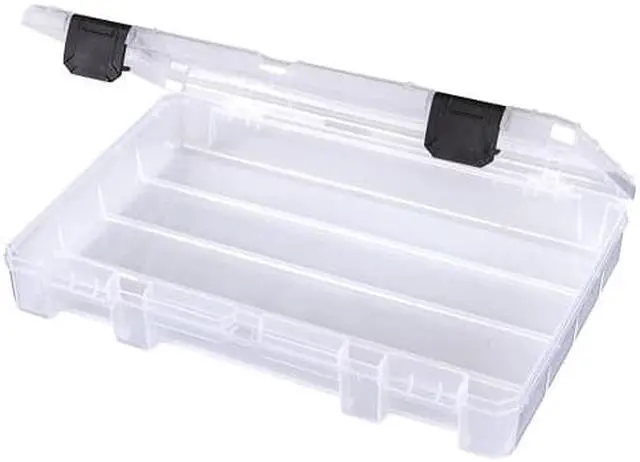 Compartment Box, Closure Type Latch, Color Clear, Compartment WxD 6 1/4 in x 1 1/2 in, Electrostatic Discharge Not Electrostatic Discharge Conductive, Material Plastic, Maximum Number of Compartments 1, Number of Adjustable Dividers 0, Overall Height 1 3/4 in, Overall Length 7 1/4 in, Overall Width 11 in, Number of Fixed Dividers 0, Compartment Depth 6 9/16 in, Compartment Width 10 9/16 in, Inside Height 1 1/2 in, Inside Length 6 1/4 in, Inside Width 10 1/2 in, Overall Diameter Not Applicable.