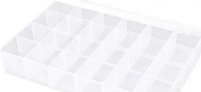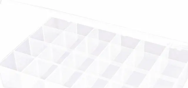 Compartment Box, Closure Type Snap, Color Clear, Compartment WxD (24) 2 1/16 in x 2 1/16 in, Electrostatic Discharge Not Electrostatic Discharge Conductive, Material Plastic, Maximum Number of Compartments 24, Number of Adjustable Dividers 0, Overall Height 2 3/8 in, Overall Length 8 3/4 in, Overall Width 13 in, Number of Fixed Dividers 8, Compartment Depth 2 1/16 in, Compartment Width 2 1/16 in, Inside Height 2 1/8 in, Inside Length 8 1/2 in, Inside Width 12 3/4 in. This item has been restricted from sale in the following state (s): []