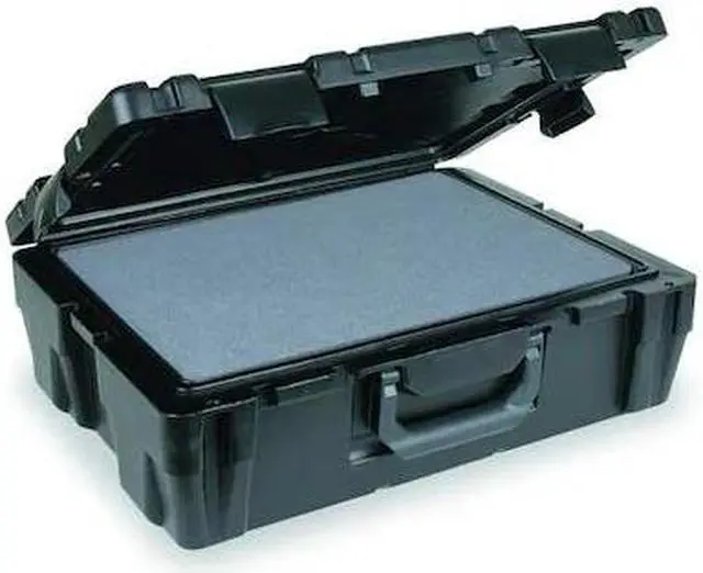 Protective Case, Bottom Depth 7 1/2 in, Closure Type Single Throw, Color Black, Electrostatic Discharge Not Electrostatic Discharge Conductive, Handle Style Folding, Includes Foam Insert Foam Insert Not Included, Inside Depth 8 in, Inside Length 22 3/4 in, Inside Width 17 3/4 in, Lid Depth 1/2 in, Material Plastic, Maximum Operating Temperature 170 Degrees F, Minimum Operating Temperature -40 Degrees F, Number of Latches 4, Number of Wheels 0, Overall Depth 9 3/8 in, Overall Length 28 3/4 in. This item has been restricted from sale in the following state (s): []