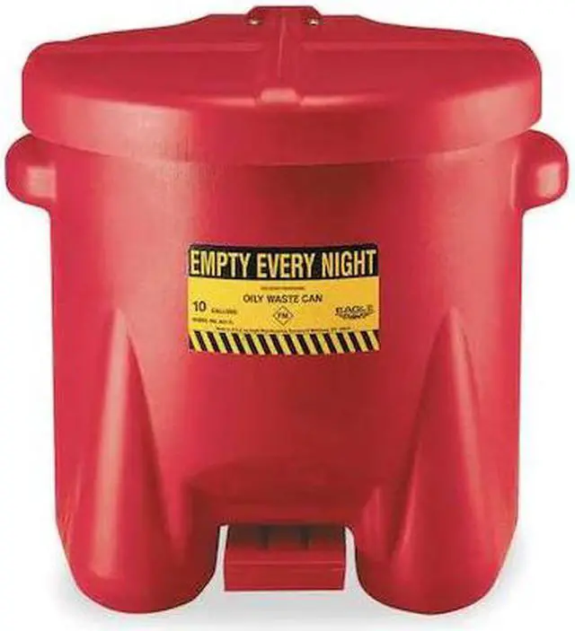Oily Waste Can, Can Diameter 18 in, Capacity 10 gal, Can Material Polyethylene, Material Finish Not Applicable, Color Red, Height 18 in, Length 18 in, Lid Closure Type Foot Operated Self-Closing, For Location Floor, Product Type Oily Waste Can, Standards FM, NFPA, OSHA, Width 22 in. This item has been restricted from sale in the following state (s): []