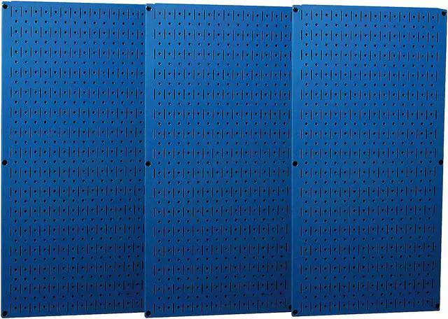 Pegboard Panel, Peg Hole Shape Round, Slotted, Peg Hole Size 1/4 in, 1 in, Peg Hole Spacing 1 in, Panel Pegboard Type, 200 lb Panel Load Capacity, 20 ga Panel Thickness, Overall Depth 3/4 in, Overall Height 32 in, Overall Width 48 in, Storage Area 10 sq ft, Number of Usable Sides 1, Number of Hooks 0, Number of Panels 3, 600 lb Whole Unit Load Capacity, Blue, Powder Coated, Steel, Includes Mounting Hardware Yes. This item has been restricted from sale in the following state (s): []