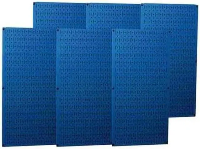 Pegboard Panel, Peg Hole Shape Round, Slotted, Peg Hole Size 1/4 in, 1 in, Peg Hole Spacing 1 in, Panel Pegboard Type, 200 lb Panel Load Capacity, 20 ga Panel Thickness, Overall Depth 3/4 in, Overall Height 32 in, Overall Width 96 in, Storage Area 21 sq ft, Number of Usable Sides 1, Number of Hooks 0, Number of Panels 6, 1, 200 lb Whole Unit Load Capacity, Blue, Powder Coated, Steel, Includes Mounting Hardware Yes. This item has been restricted from sale in the following state (s): []