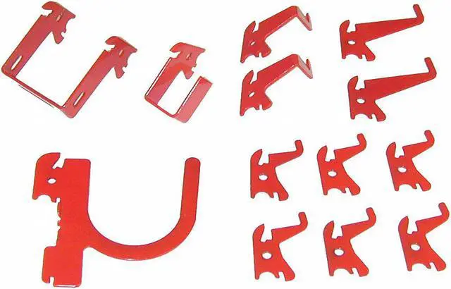 Slotted Toolboard Hook Kit, Number of Hooks 11, Overall Width 1 in, 1 in For Pegboard Hole Spacing, For Pegboard Hole Size 1 in, For Tool Type Box End Wrenches, Drills, Pliers, Socket Wrenches, Surface, Hanging Locking System, Slotted For Pegboard Hole Shape, Steel, Red, Powder Coated, Hook Assortment Kit Accessory Type, Slotted Toolboard C-Bracket, 1 in x 1 in, Slotted Toolboard C-Bracket, 2 in x 2 in. This item has been restricted from sale in the following state (s): []