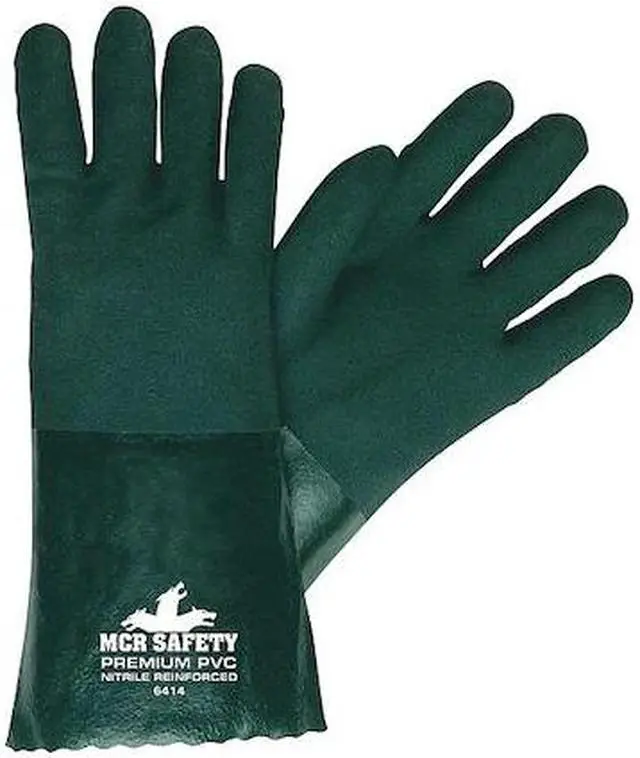 Mcr Safety Chemical Gloves,L,14 in.L,Green,PVC,PK12 6414