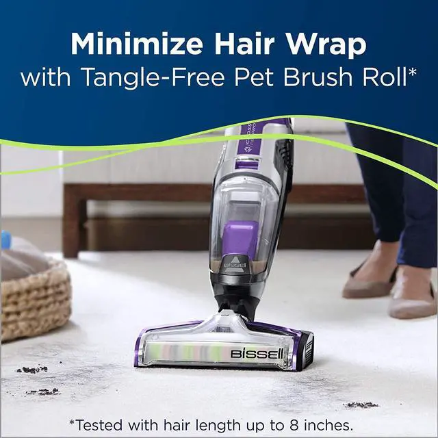 - Goodbye pet hair wrap! The Tangle-Free Brush Roll scrubs to remove debris and minimizes annoying pet hair wrap.**