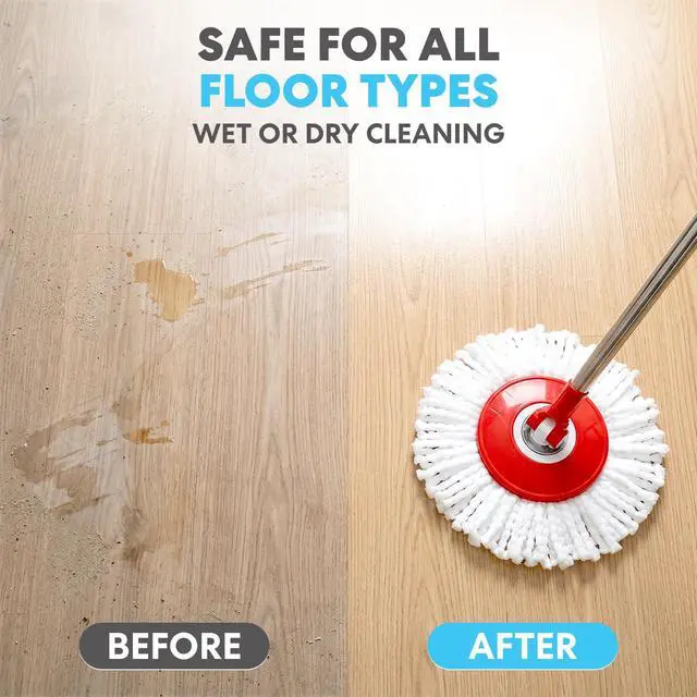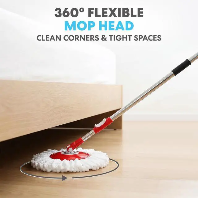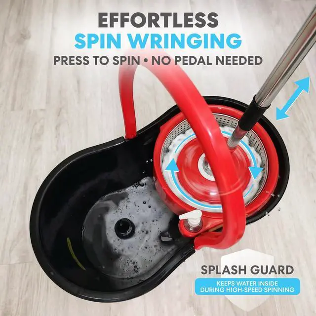 Quality Performance: Spin mop & bucket has stronger spin wringing performance than those work with pedal, can wring out with just a gentle downward pressure, the built-in wringing basket has splash guard features, keep the water inside the bucket, so the mop head wrings drier, saves effort, saves time and is more durable. Come with 3 super thick microfiber spin mop heads for long-term use.