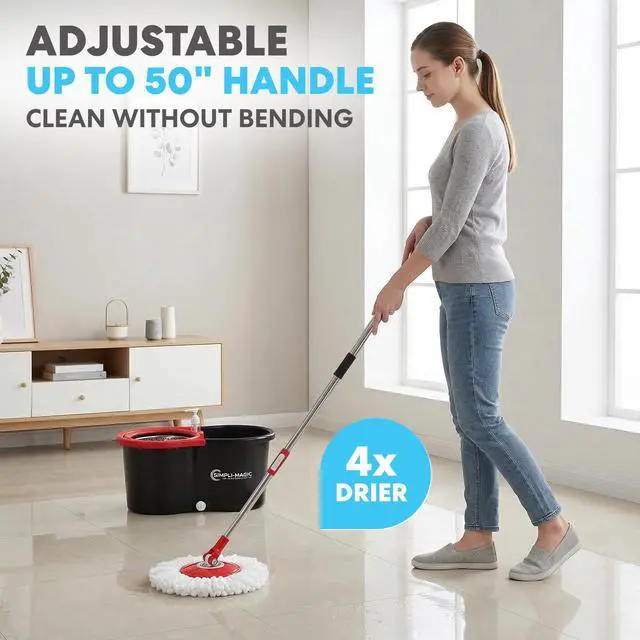 High Quality: Our mop bucket with wringer set, basket, pallet, and handle are all made of sturdy 304 stainless steel and PP, making it very strong and resilient. The adjustable handle can extend up to 50 inches and is designed to be non-deforming and long-lasting, so you dont have to bend down and suffer from back pain. This spin mop and bucket are built for long-term use