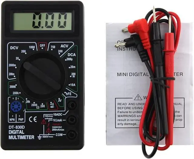 DT-830D Digital Multimeter with Buzzer Square Wave Output Voltage Ampere Ohm Tester Probe DC AC LCD Overload Protection