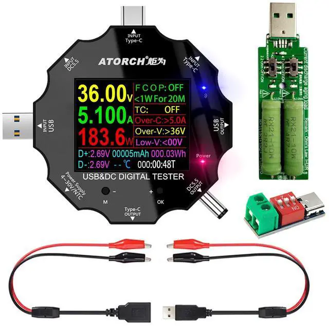 - Packing List: USB Tester X 1,Crocodile Clip X 2, USB Load X 1, Fast Charging Protocol Trigger X 1