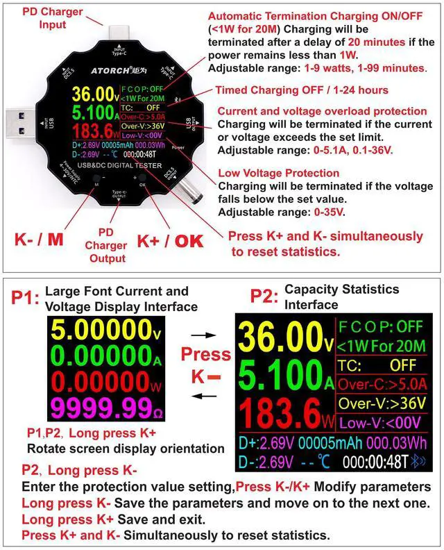 - Capacity/Power accumulation range: 0~99999mAh/0~999.99Wh