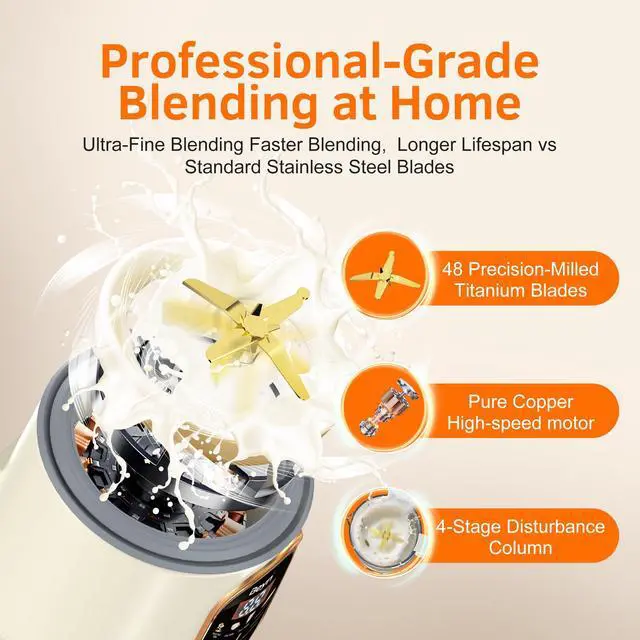 : - Experience zero-grit, café-quality texture. Our upgraded 48 food-grade titanium blades provide 200% stronger crushing power than standard models,Thoroughly crush nuts and grains. Titanium is corrosion-resistant and lasts 10x longer than stainless steel, ensuring durability and consistent performance for years.