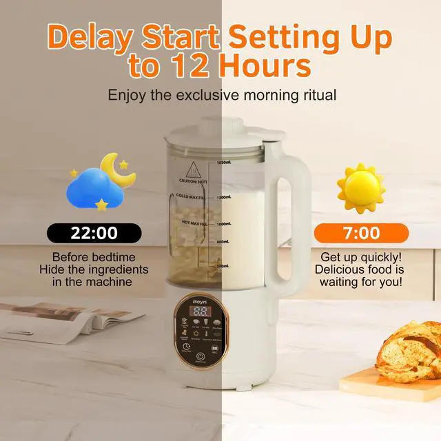 -- -- , Go beyond basic milk making. This machine effortlessly creates silky-smooth almond milk, rich soy milk, creamy oat milk, refreshing juices, nutritious baby food, and even hot soups. The Delay Start (12hr) & Keep Warm functions ensure fresh, ready-to-serve drinks anytime, making it your ultimate automated beverage center.