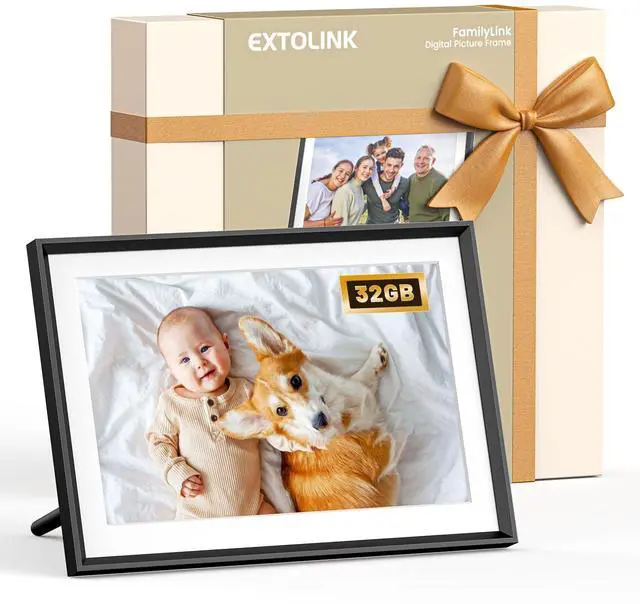 ExtoLink 10.1" Smart WiFi Digital Picture Frame with 32GB Memory, Auto-Rotate Touch Screen for Wall/Tabletop birthday christmas Gifts for Woman,Mom, Dad, Wife
