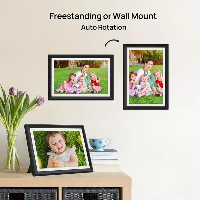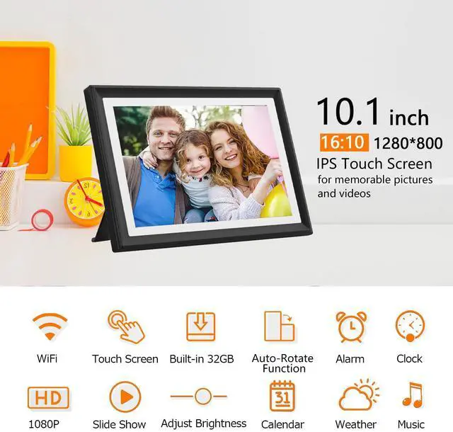 Setup the frame. Connect your frame to the internet by connecting it to a Wi-Fi. Set Language , City, Time zone.