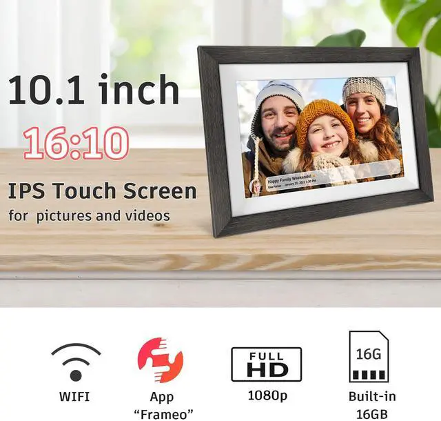 2:digital photo frame supports Frameo software, and is free to transfer photos and videos with unlimited data. Only 10 photos and 30S 1080P short videos can be transferred at a time.