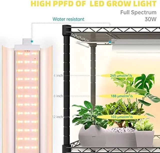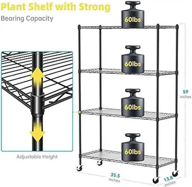 Plant Shelf with Grow Light - 59H X 13.8W X 35.4L 4-tier grow light shelf and 3-pack plant lights. Suitable for you to grow or display indoor plants. It is a professional grow light for seed starting, seed tray, aloe vera, succulents, flowers