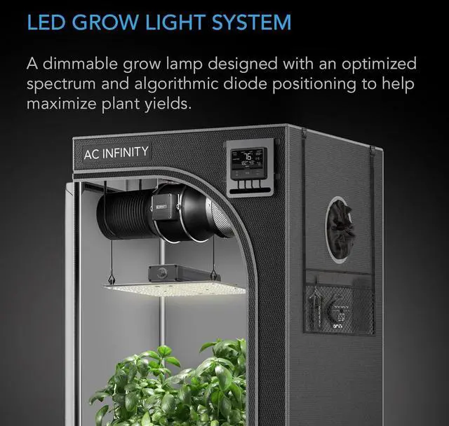 • Utilizes full-spectrum Samsung LM301H LEDs to achieve powerful lighting optimized for all plant stages.