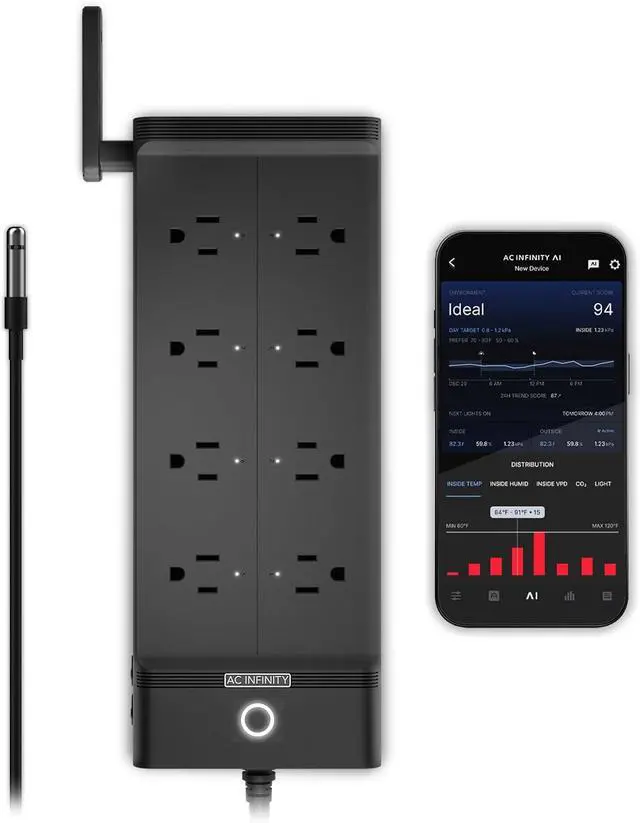 AC Infinity Outlet AI+, Environment Controller, Smart WiFi Power Strip, Dual-Zone Temperature Humidity, Individual Control 8 Plugs, AI Targeting, Thermostat Greenhouse Aquarium Terrarium Home, 1800W