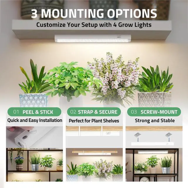 Flexible Installation Options for Various SettingsCrafted from durable, corrosion-resistant aluminum, this indoor plant light strip offers multiple installation options: zip ties, double-sided tape, or anti-slip clips. Whether under cabinets, on plant shelves, or in greenhouses, these grow lights fit seamlessly into your indoor growing space.