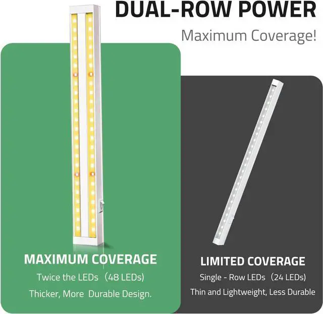 Dual-Row LED Grow Light for Enhanced CoverageThe unique dual-row LED panel design with a power of 48W features 384 (96*4) high-quality LEDs per lamp, offering a broader and more uniform coverage area compared to single-row designs. Whether for larger plant stand or smaller spaces, this grow light ensures your plants receive more comprehensive lighting, promoting healthy and rapid growth.