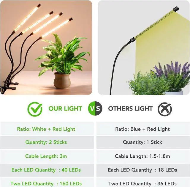 White and Red Color Mixed: Equipped with 28 Red +100 Warm White +32 Cool White LEDs, The LEDs quantity is double that of others. The Clip growing Lamp is similar to the full spectrum sunlight at noon, that is professionally designed for indoor garden plants. The lights have higher PPFD and brightness than others.