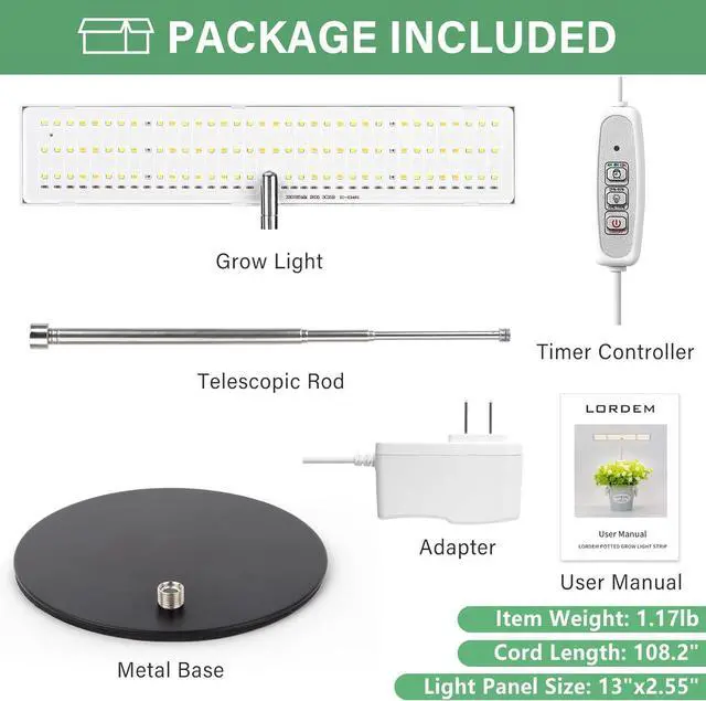 Upgraded Desk Plant Lighting Solution: This grow light is designed with a 13" x 2.5 " aluminum ultra-thin grow light panel, which is lightweight and has great heat dissipation, it can provide broad light coverage to help your plants grow more happily and faster. A sponge pad under the solid metal base makes it more stable and can protect your table from scratches. AN IDEAL PLANT LAMP FOR YOUR INDOOR PLANTS!