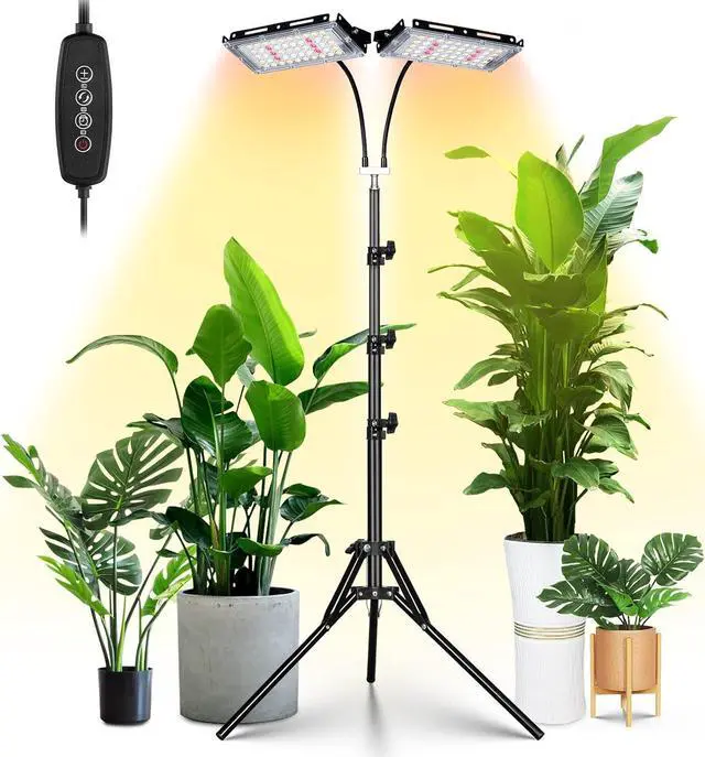 Dual Heads Plant Lamp: The led grow light is designed with 2 light panels on one stand to make it cover a more extensive lighting area for your plants to help them grow happier. With the tripod stand and 360° gooseneck, the grow light is more convenient to be adjusted to the different positions of all kinds of plants need.