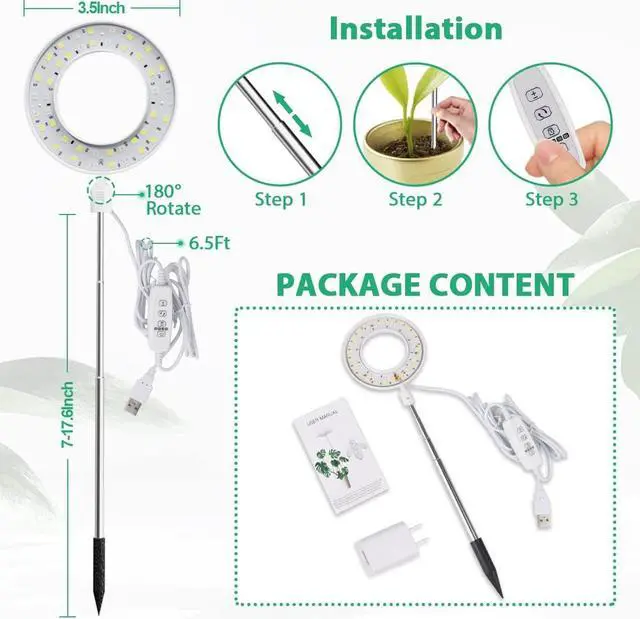 Easy to Use---Just within 10 seconds! Place the pole into the soil, then adjust the lamp to the best lighting position according to your needs. Easy & Convenient!