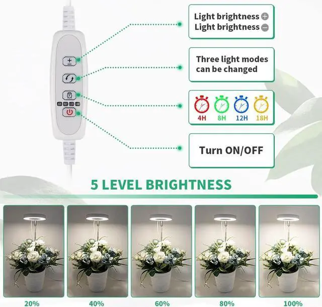 6000K White Circle Lights---Equipped with super bright 6 Red+6 Blue+36 White LED beads, this indoor seedling light provides a full spectrum like sunlight to promote plant growth, that is professionally designed for indoor garden potted plants.