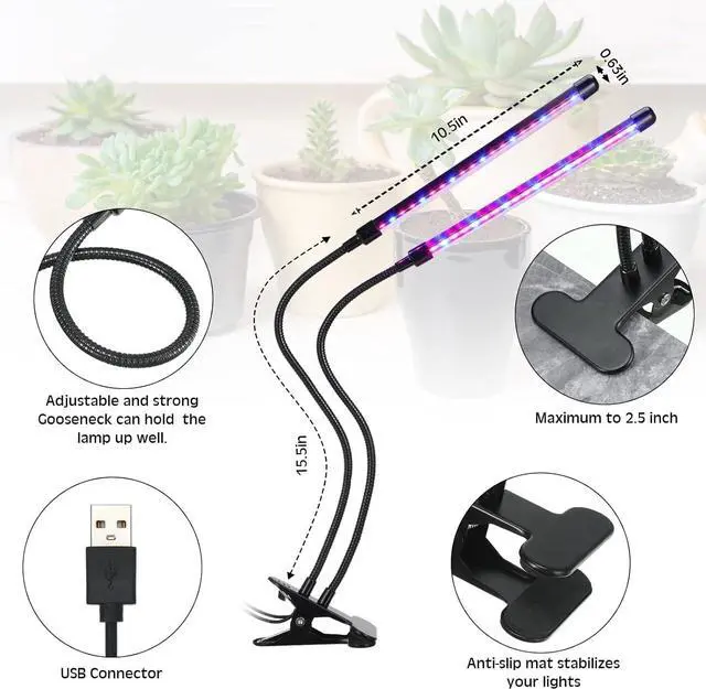 Sturdy and Flexible: the grow lights feature the 360 degree flexible light pole design and anti slip clamps, that allow you to adjust the angle and distance easily and expand the lighting area, providing more lighting for more plants