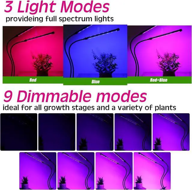 Efficient Full Spectrum Light: this grow light lamp allows you to provide plants with ample full spectrum lights, just like natural sunlight; The 9 dimmable modes grow lights are ideal for all growth stages and a variety of plants